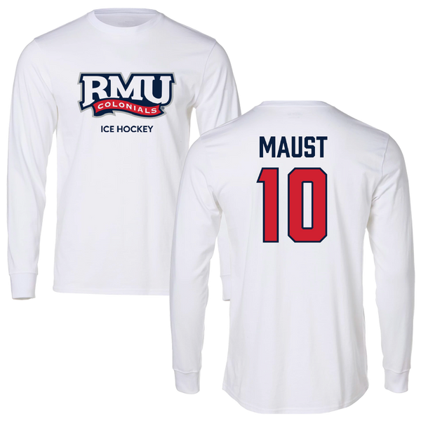 Robert Morris University Ice Hockey (M) White Long Sleeve - #10 Paul Maust