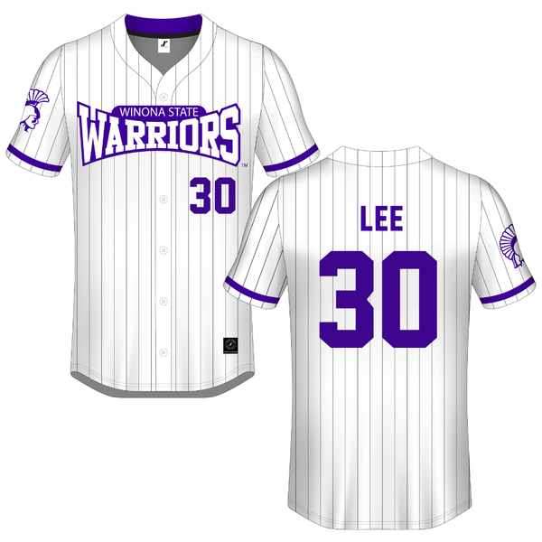 Winona State University White Pinstripe Button-Down Jersey - #30 Peyton Lee