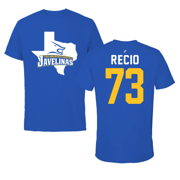 Texas A&M University-Kingsville Football Blue State Tee - #73 Rafael Recio