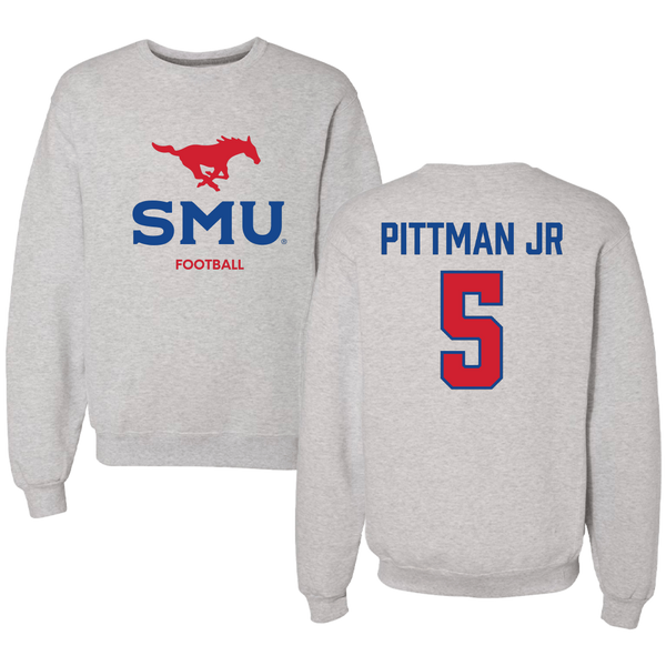 Southern Methodist University Football Light Gray Crewneck - #5 Randy Pittman Jr