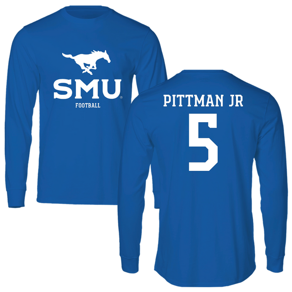 Southern Methodist University Football Blue Mascot Long Sleeve - #5 Randy Pittman Jr