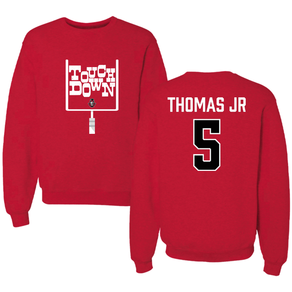 Austin Peay State University Football Red Touchdown Crewneck - #5 Rashaud Thomas Jr