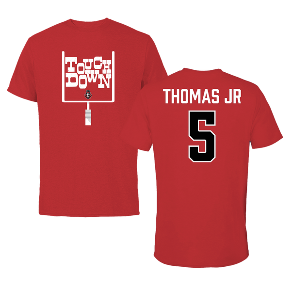 Austin Peay State University Football Red Touchdown Tee - #5 Rashaud Thomas Jr