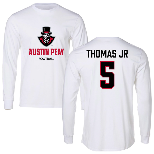 Austin Peay State University Football White Long Sleeve - #5 Rashaud Thomas Jr