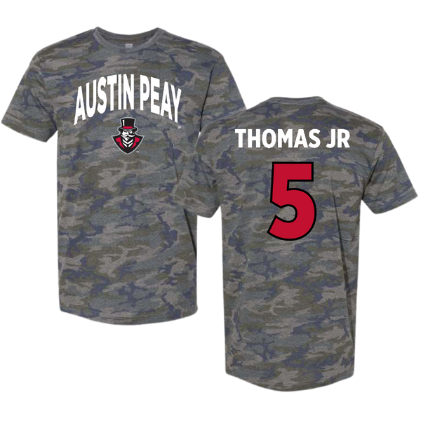 Austin Peay State University Football Vintage Camo Tee - #5 Rashaud Thomas Jr
