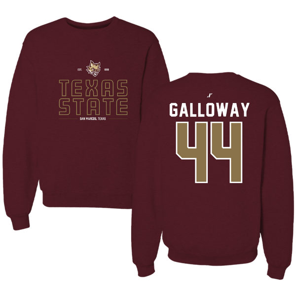 Texas State University Baseball Maroon General Crewneck - #44 Rashawn Galloway