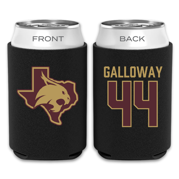 Texas State University Baseball Black Can Cooler - #44 Rashawn Galloway