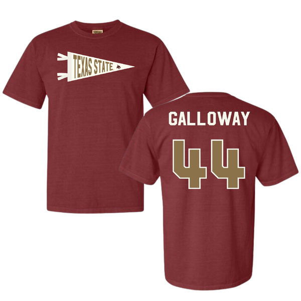Texas State University Baseball Maroon Pennant Comfort Colors Tee - #44 Rashawn Galloway