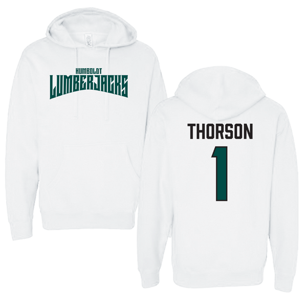 Cal Poly Humboldt Basketball (M) White Classic Hoodie - #1 Raydon Thorson