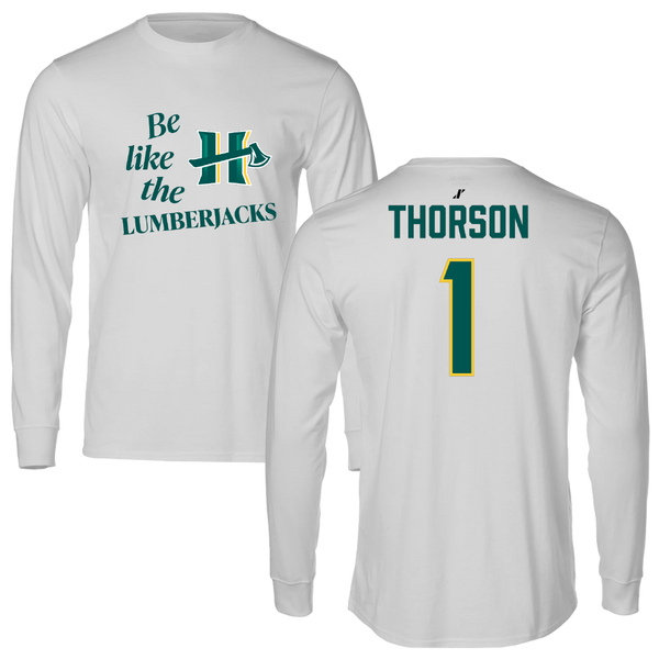 Cal Poly Humboldt Basketball (M) White Classic Long Sleeve - #1 Raydon Thorson