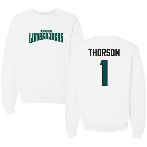 Cal Poly Humboldt Basketball (M) White Classic Crewneck - #1 Raydon Thorson