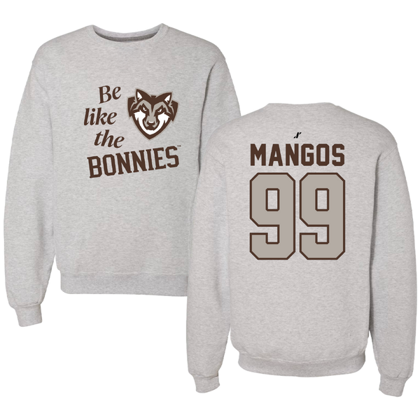 St. Bonaventure University Softball Light Gray Be Like Us Crewneck - #99 Reagan Mangos