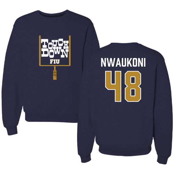 Florida International University Football Navy Touchdown Crewneck - #48 Richard Nwaukoni