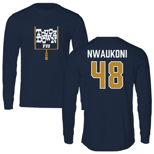 Florida International University Football Navy Touchdown Long Sleeve - #48 Richard Nwaukoni
