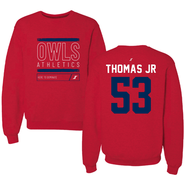 Florida Atlantic University Football Red Dominate Crewneck - #53 Richard Thomas Jr