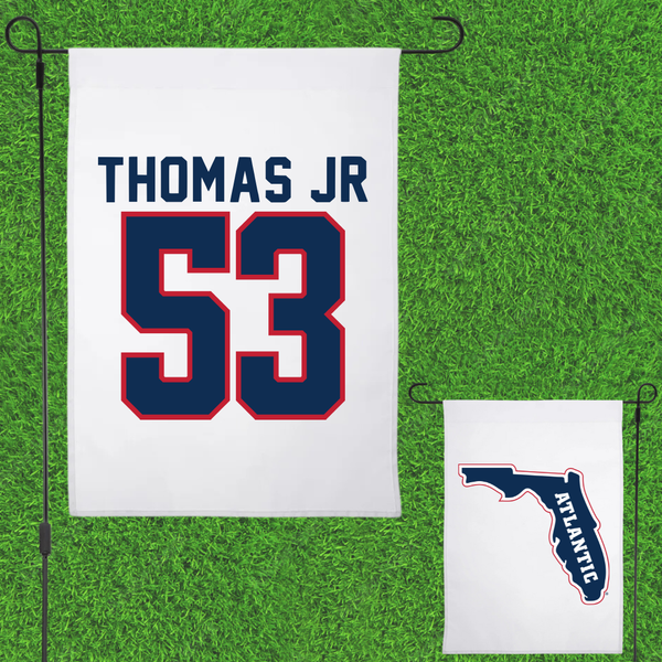 Florida Atlantic University Football White Garden Flag - #53 Richard Thomas Jr