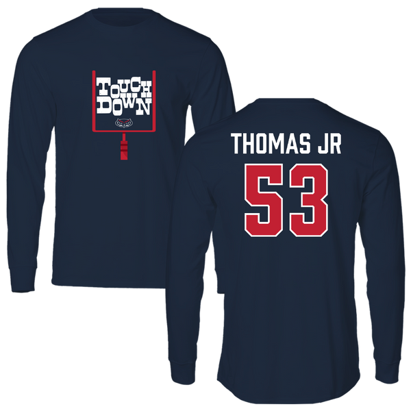 Florida Atlantic University Football Navy Touchdown Long Sleeve - #53 Richard Thomas Jr