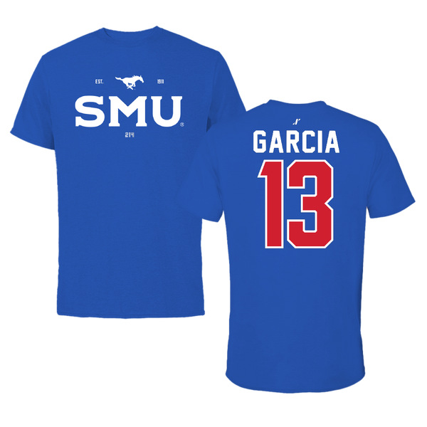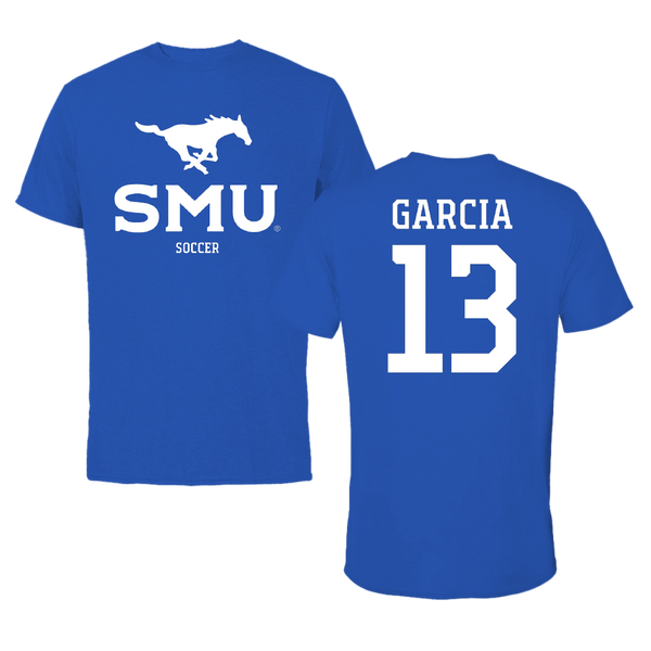 Southern Methodist University Soccer (M) Blue Mascot Tee - #13 Richie Garcia