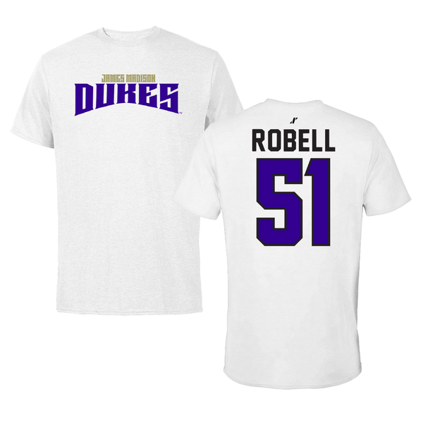 James Madison University Football White Tee - #51 Riley Robell