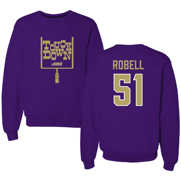 James Madison University Football Purple Touchdown Crewneck - #51 Riley Robell