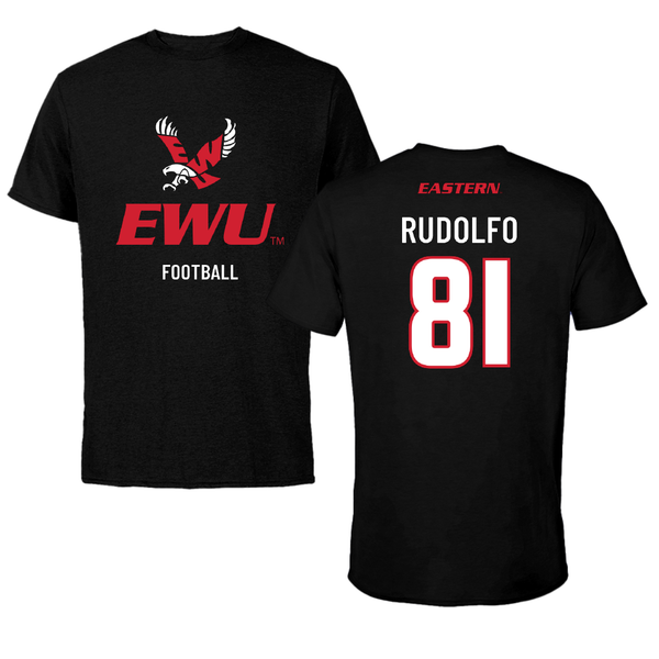 Eastern Washington University Football Black Eastern Tee - #81 Riley Rudolfo