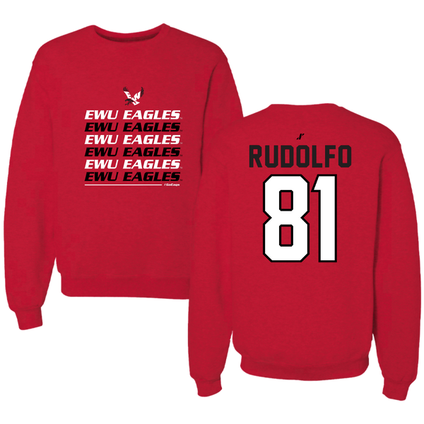 Eastern Washington University Football Red General Crewneck - #81 Riley Rudolfo