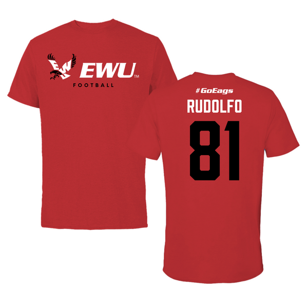 Eastern Washington University Football Red Tee - #81 Riley Rudolfo