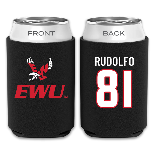 Eastern Washington University Football Black Can Cooler - #81 Riley Rudolfo