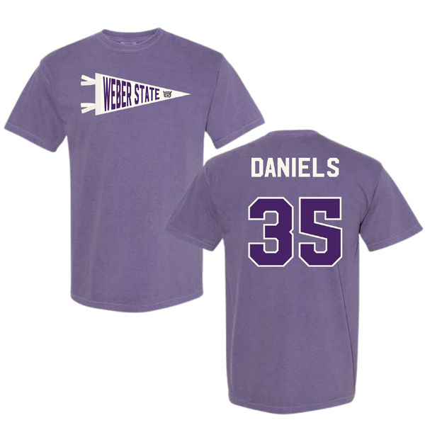 Weber State University Football Purple Pennant Comfort Colors Tee - #35 Rishi Daniels
