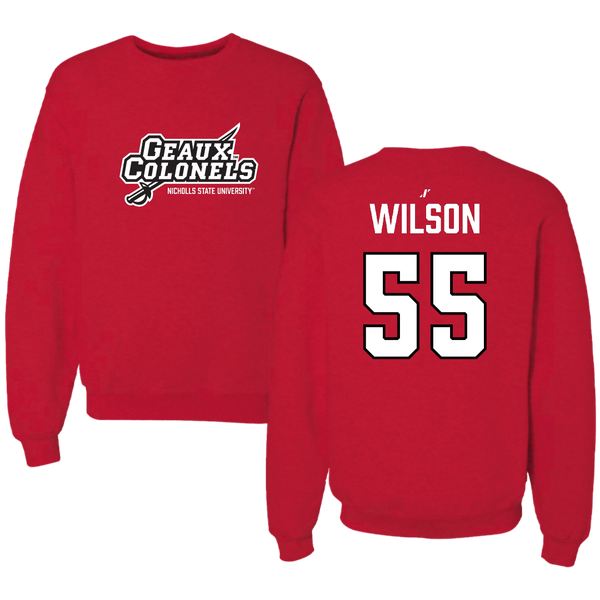 Nicholls State University Baseball Red General Crewneck - #55 RJ Wilson
