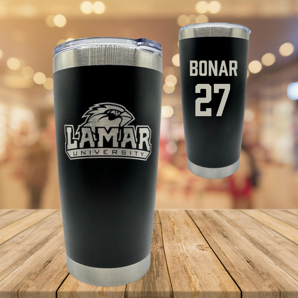 Lamar University Football Black Stainless Steel Tumbler - #27 Robert Bonar