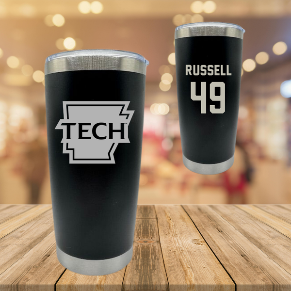 Arkansas Tech University Football Black Stainless Steel Tumbler - #49 Ronald Russell