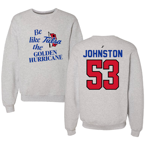 The University of Tulsa Football Light Gray Be Like Us Crewneck - #53 Ross Johnston
