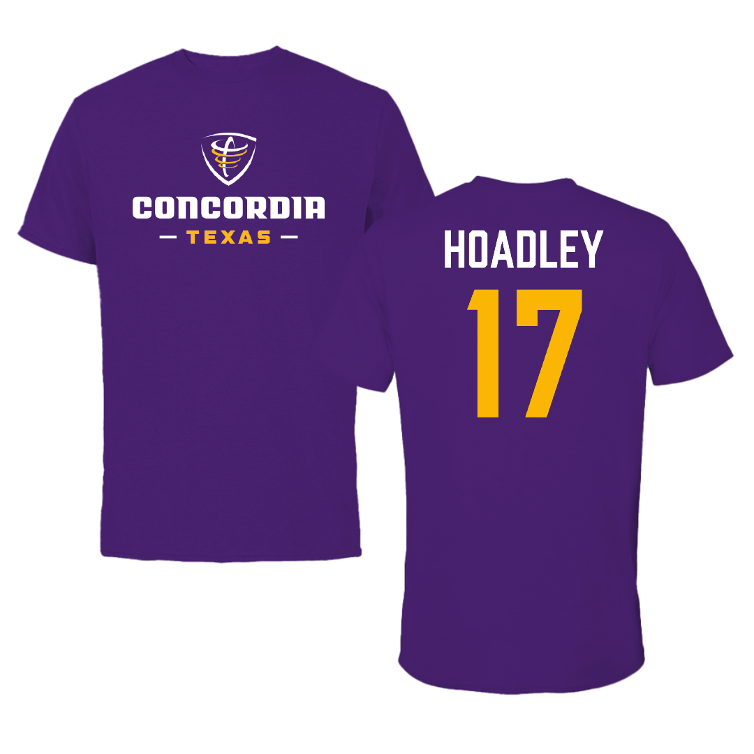 Concordia University (Texas) Baseball Purple Performance Tee - #17 Rowdy Hoadley