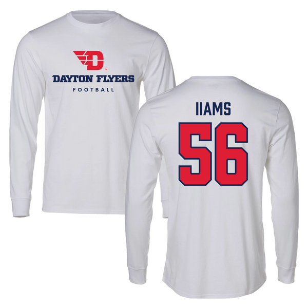 University of Dayton Football White Long Sleeve - #56 Ryan Iiams