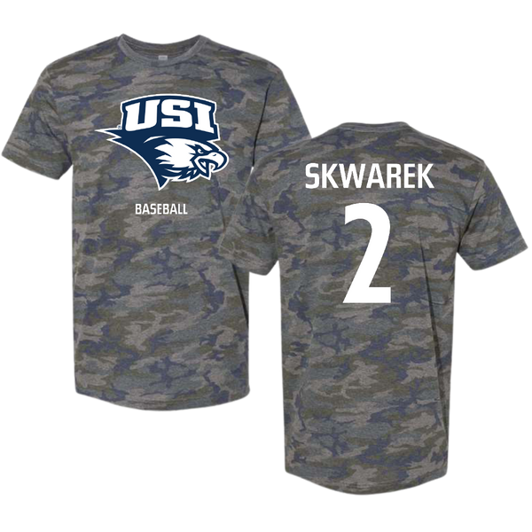 University of Southern Indiana Baseball Vintage Camo Tee - #2 Ryan Skwarek