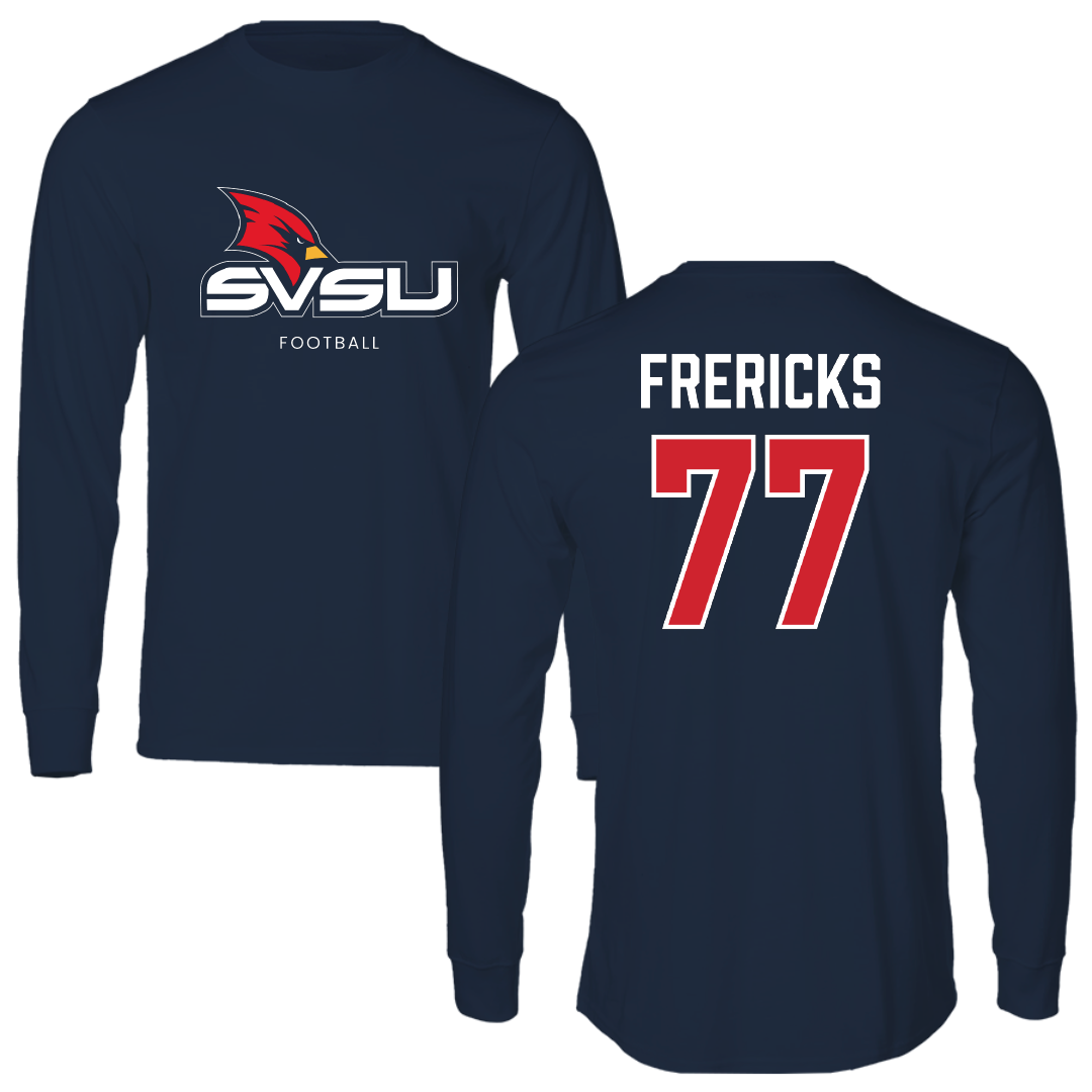 Increase quantity for Saginaw Valley State University Football Navy Performance Long Sleeve - #77 Ryder Frericks