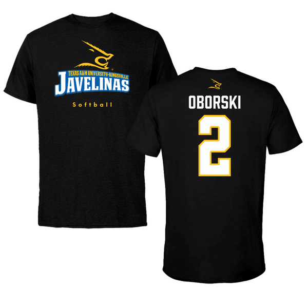 Texas A&M University-Kingsville Softball Black Tee - #2 Rylee Oborski
