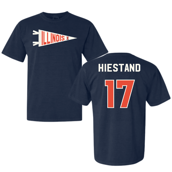 University of Illinois Soccer Navy Pennant Comfort Colors Tee - #17 Sarah Hiestand