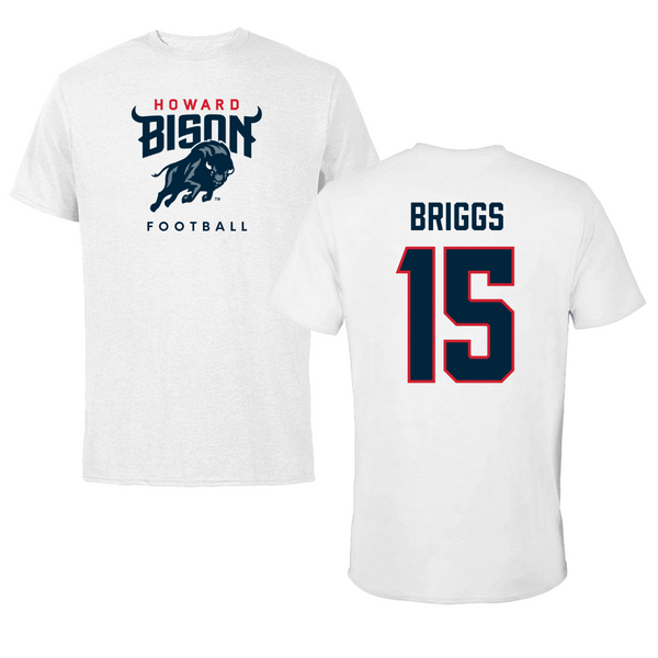 Howard University Football White Tee - #15 Savan Briggs
