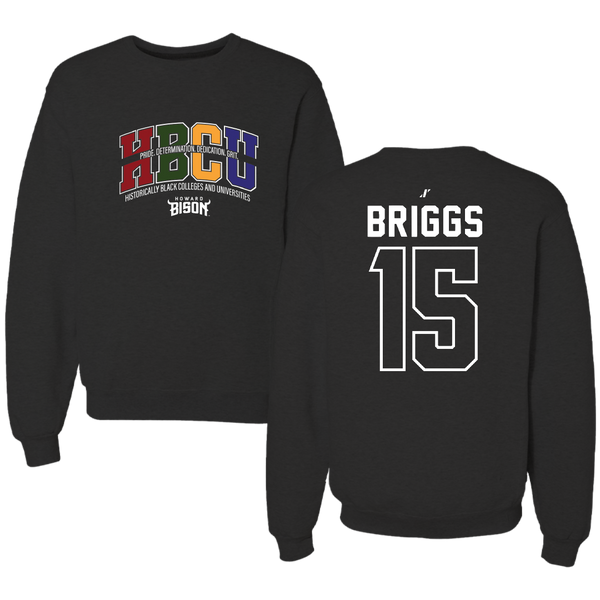 Howard University Football Black HBCU Crewneck - #15 Savan Briggs