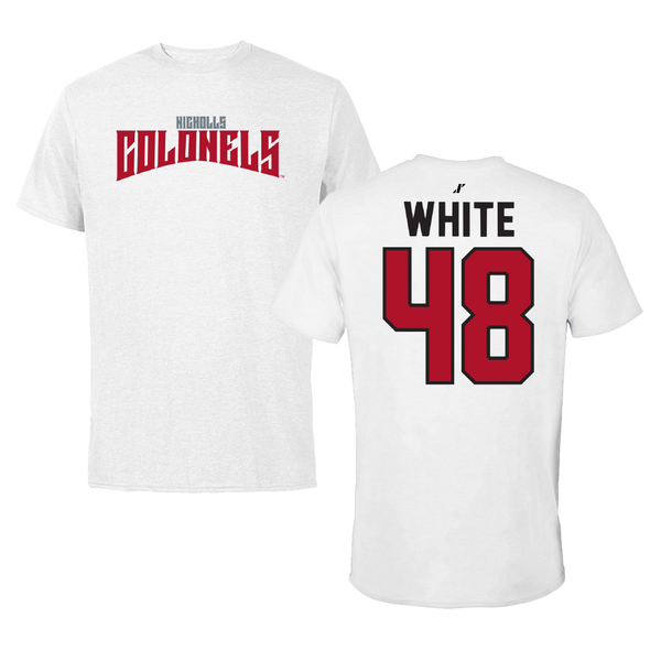 Nicholls State University Football White Classic Tee - #48 Scott White