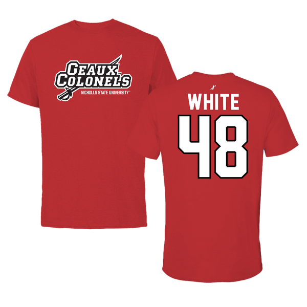 Nicholls State University Football Red General Tee - #48 Scott White