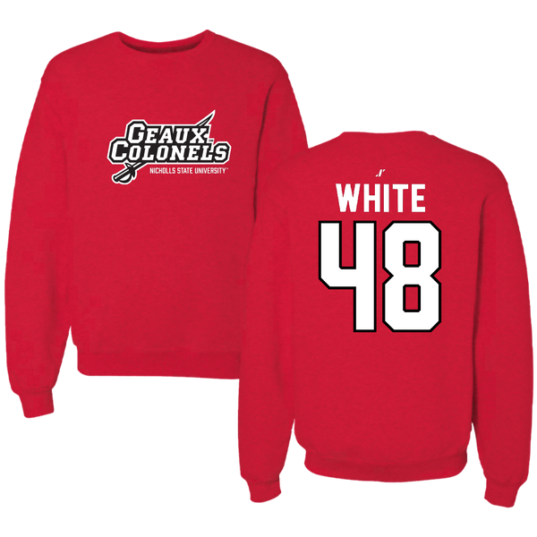 Nicholls State University Football Red General Crewneck - #48 Scott White