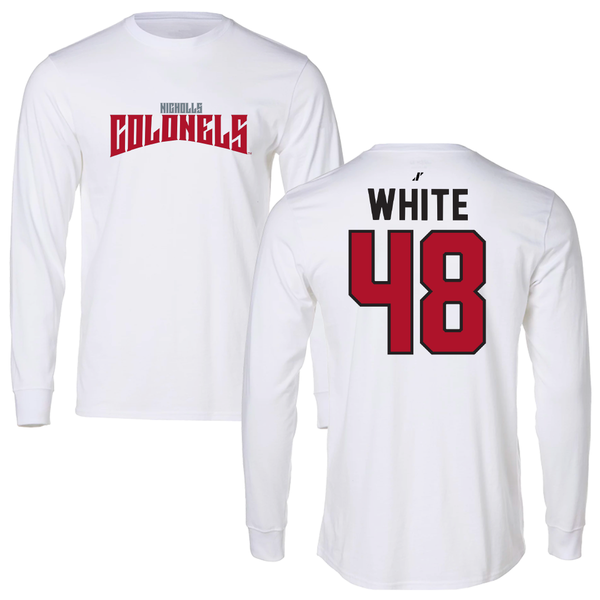 Nicholls State University Football White Classic Long Sleeve - #48 Scott White