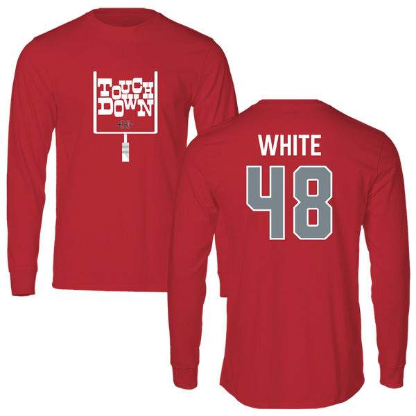 Nicholls State University Football Red Touchdown Long Sleeve - #48 Scott White