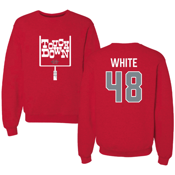 Nicholls State University Football Red Touchdown Crewneck - #48 Scott White