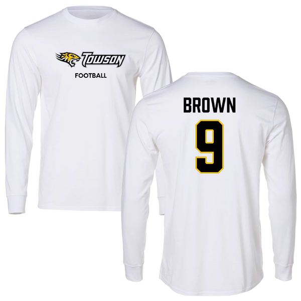 Towson University Football White Long Sleeve - #9 Sean Brown