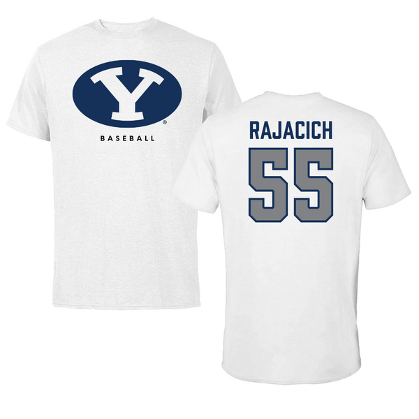 Brigham Young University Baseball White Classic Tee - #55 Seth Rajacich