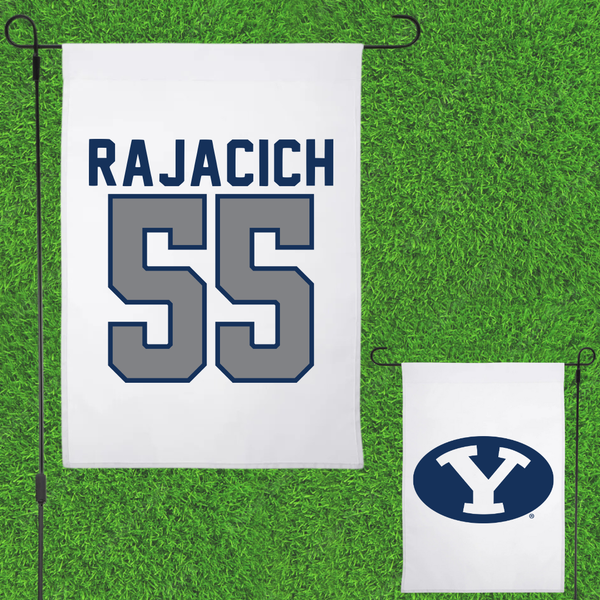 Brigham Young University Baseball White Garden Flag - #55 Seth Rajacich